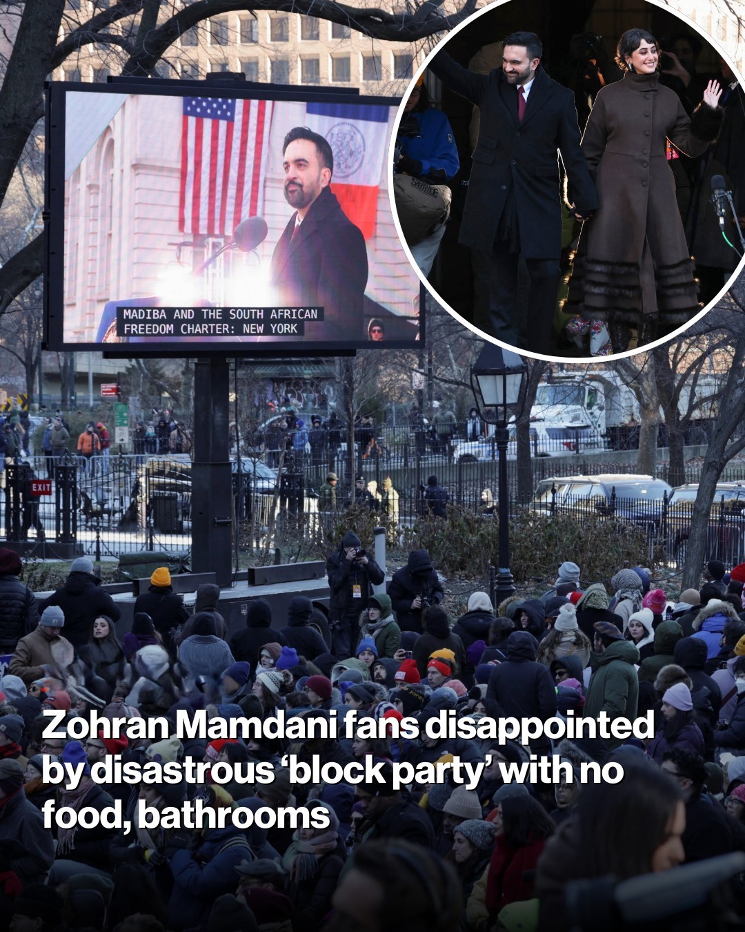 Scores of Zohran Mamdani fans who braved freezing temperatures to celebrate the new mayor as he was publicly sworn into office Thursday were left disappointed by the bash the socialist pol had promised.